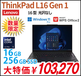 Lenovo ThinkBook 16 Gen 7 AMD ノートパソコン 21MWCTO1WW Windows11 Pro Office付き Ryzen 5 7533HS メモリ32GB SSD512GB 16インチ 再生品Sランク