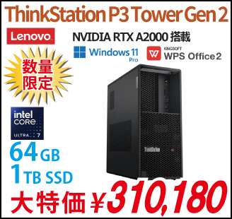 Lenovo ThinkStation P2 Tower Gen2 デスクトップパソコン 30JRS1P100 Win11 Pro Ultra 7 265 メモリ32GB SSD512GB RTX4000ada 再生品Sランク