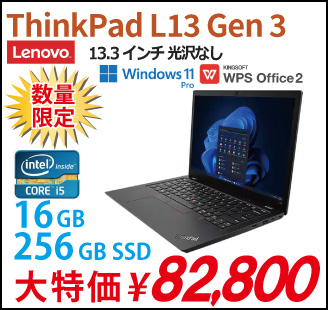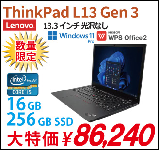 Lenovo ThinkPad L13 Gen 3 ノートパソコン 21B4S1AY00 Windows11 Pro Office付き Core i5-1245U メモリ16GB SSD256GB 13.3インチ 再生品Sランク