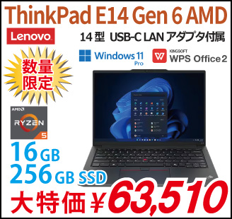 Lenovo ThinkPad P14s Gen 5 AMD ノートパソコン 21MFS1PJ00 Windows11 Pro Office付き Ryzen 5 PRO 8640HS メモリ16GB SSD256GB 14インチ 再生品Sランク