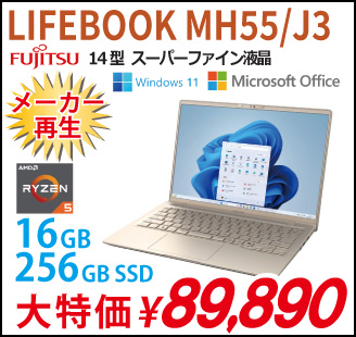 富士通 LIFEBOOK MH55/J1 ノートパソコン FMVM55J1S Windows11 Office付き Ryzen 5 7520U メモリ16GB SSD256GB 14インチ 再生品Sランク