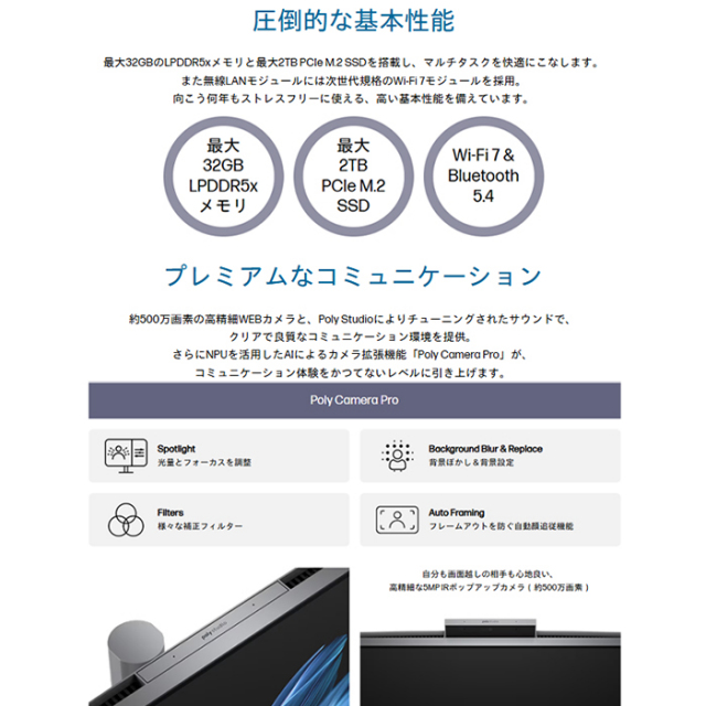 | WEBカメラ | 5MP IR ポップアップカメラ (約500万画素) |