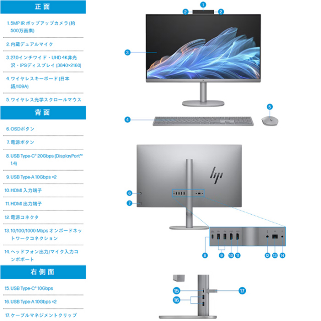 | キーボード | ワイヤレスキーボード (日本語/109A/Copilotキー搭載) & ワイヤレス光学スクロールマウス |