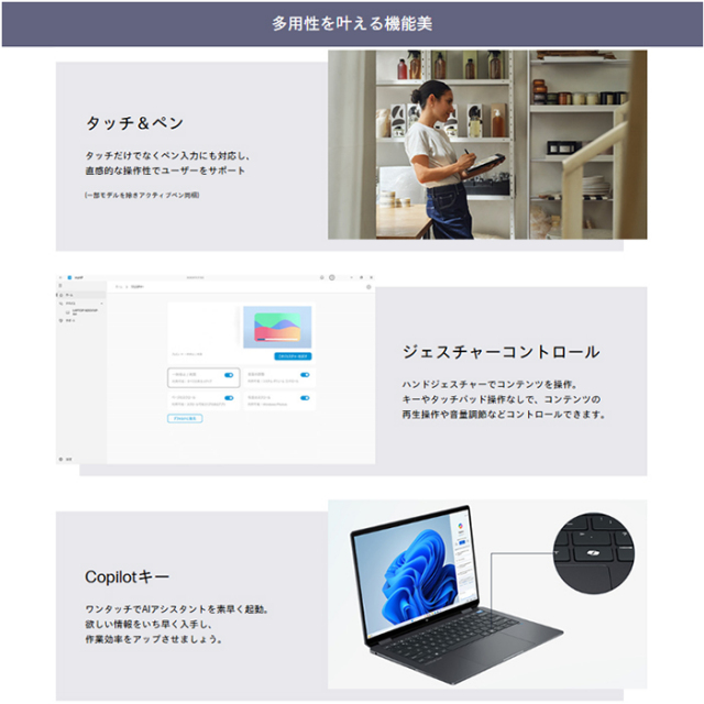 | ディスプレイ | 14.0インチ OLED タッチディスプレイ(48~120Hz /テュフ・ラインランドEyesafe認定ディスプレイ) |