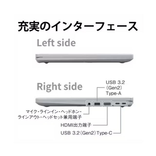 | WEBカメラ | フルHD Webカメラ内蔵(プライバシーカメラシャッター付)(有効画素数 約207万画素)Windows Hello対応 |