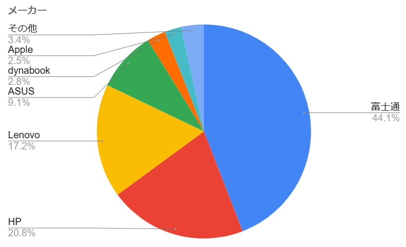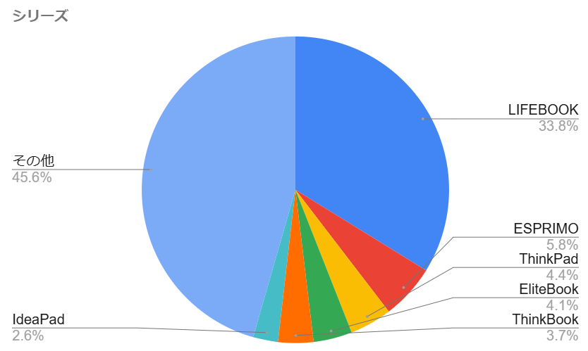 富士通のノートパソコン「LIFEBOOK」が圧倒的な人気を誇ります。また、デスクトップでも富士通が人気。