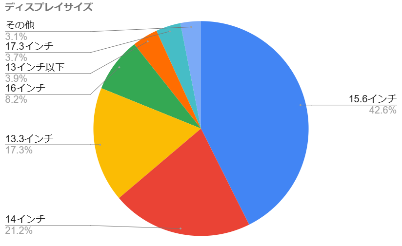 画面サイズは15.6インチが最も人気です。